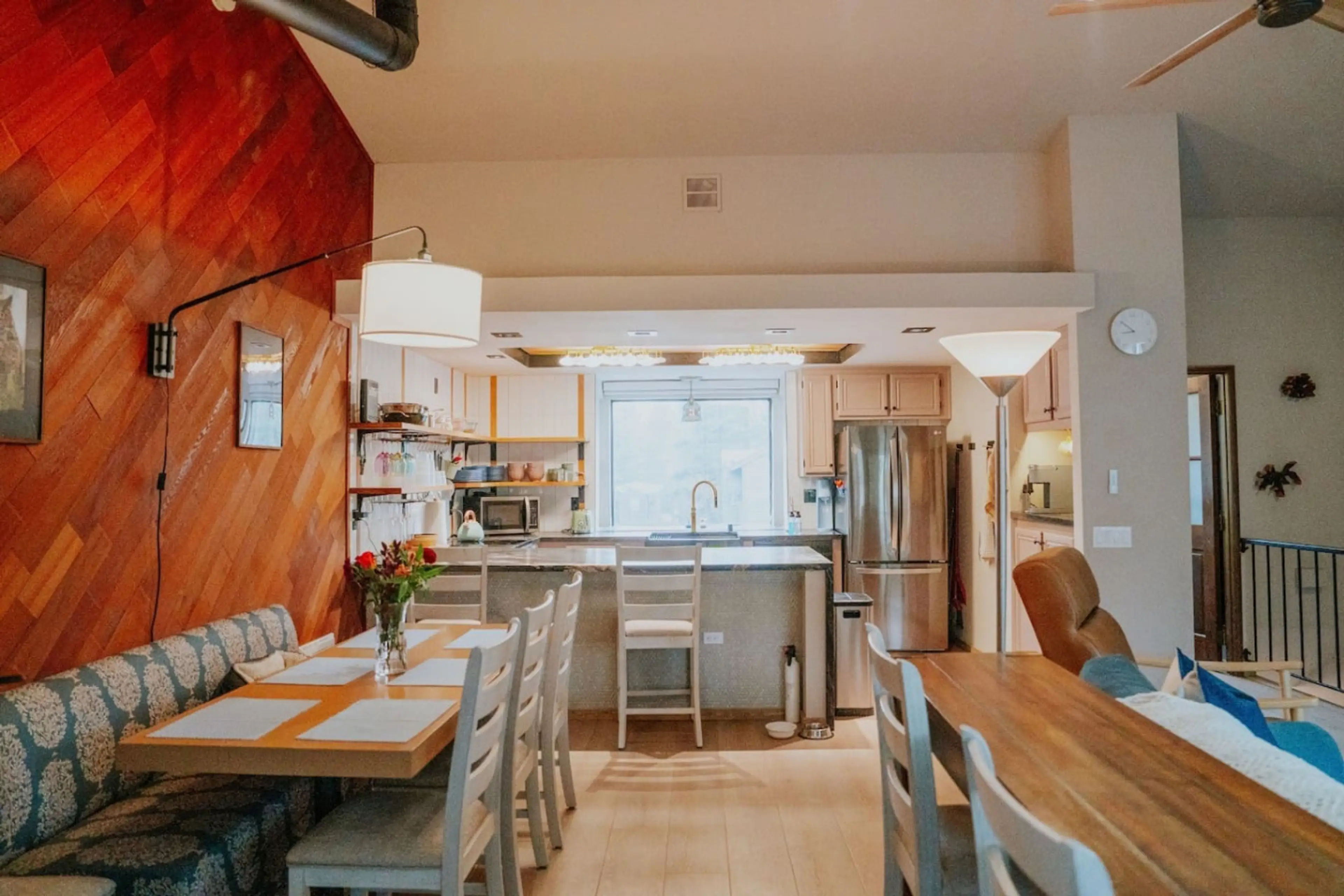 Modern Mammoth retreat with forest views, updated kitchen, and cozy living area with electric-start fireplace. Bedrooms are downstairs with radiant floor heating. Enjoy a private, covered hot tub with a gentle, non-chemical system, plus a propane BBQ. Peaceful location next to walking paths and surr...